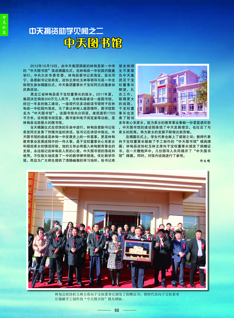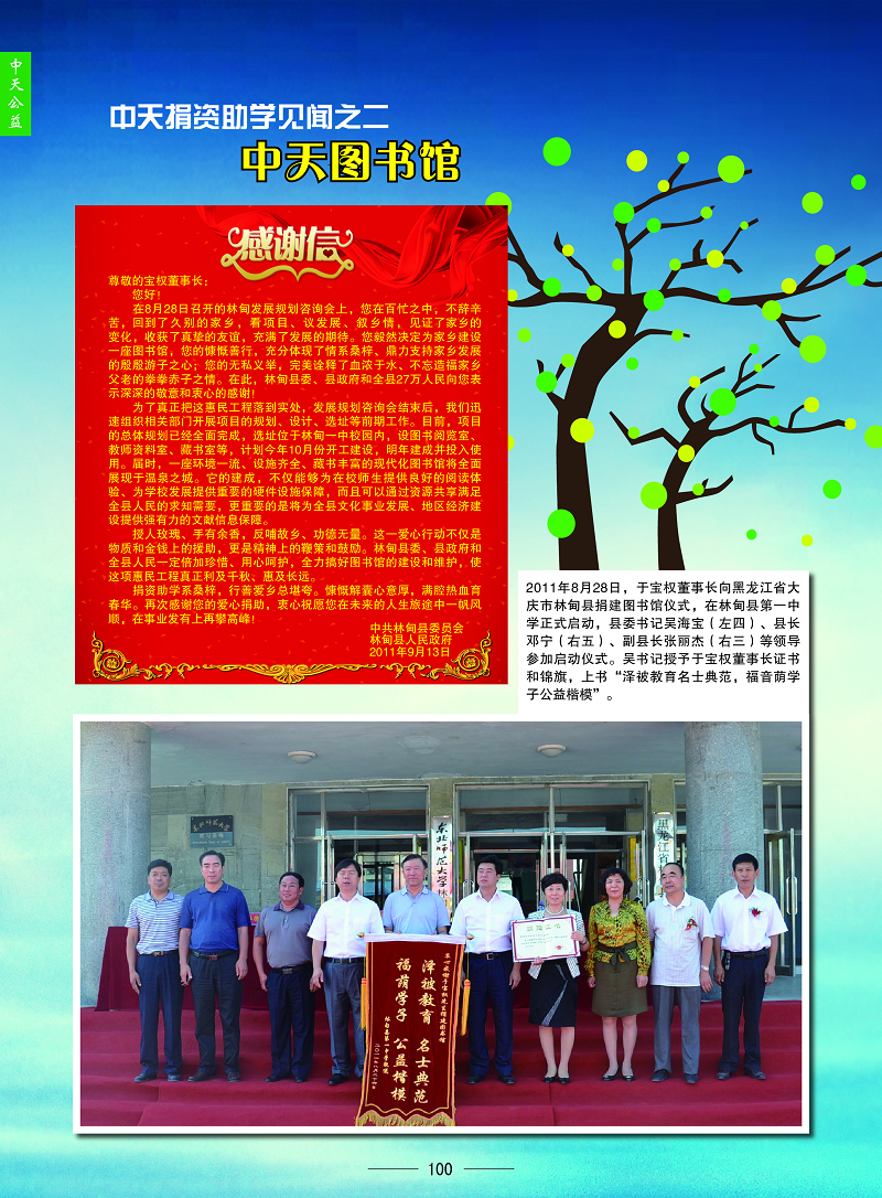 捐助300萬為林甸建圖書館