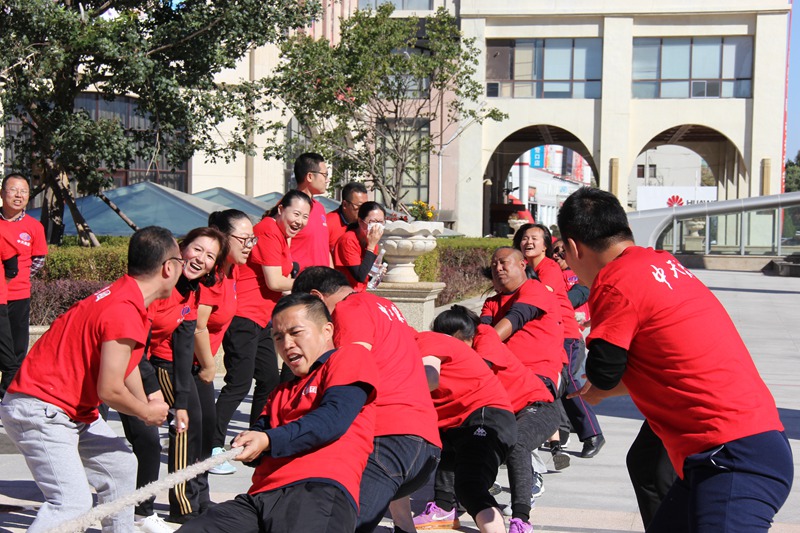 伴隨著于總一聲令下,比賽正式開始。本屆運(yùn)動(dòng)會(huì)共設(shè)5個(gè)團(tuán)體項(xiàng)目,包括拔河、二人三足跑、齊心協(xié)力、海底撈月和激情傳遞。首先進(jìn)行的是拔河比賽,各代表隊(duì)分別派出10名選手參賽。隨著裁判員哨音響起,鑼鼓聲、吶喊聲響成一片,每一組比賽都在愉快的笑聲和遺憾聲中結(jié)束。經(jīng)過激烈角逐,萬(wàn)豪酒店和機(jī)關(guān)二隊(duì)進(jìn)入了最后的決賽。萬(wàn)豪酒店是上屆拔河比賽的冠軍,機(jī)關(guān)二隊(duì)的實(shí)力也是非常強(qiáng)勁,每一局比賽雙方都會(huì)反復(fù)拉鋸,在一片吶喊和力量的較量后,最后,萬(wàn)豪酒店取得拔河賽冠軍,衛(wèi)冕成功。