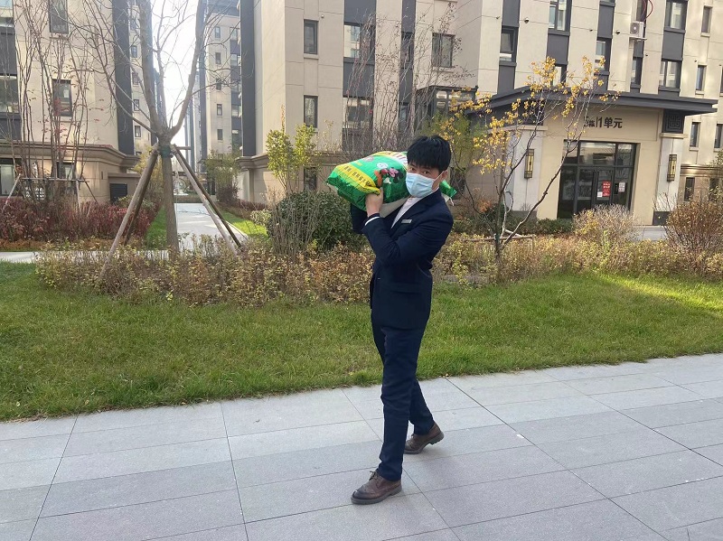 盤錦及撫順物業(yè)公司服務(wù)的幾個(gè)項(xiàng)目,都是新交房小區(qū),面對(duì)入住業(yè)主較少,裝修工人滯留,物業(yè)積極聯(lián)系社區(qū)做好封控人員的核酸檢測(cè)工作。由于人員緊缺,不少物業(yè)人員24小時(shí)堅(jiān)守在項(xiàng)目,一人身兼數(shù)職,保安剛幫業(yè)主把物品送上樓,又要馬上幫助保潔人員對(duì)大堂進(jìn)行消殺工作;保潔員除了園區(qū)衛(wèi)生清潔,樓道消殺,還要上門收垃圾;房管員受裝修完未入住業(yè)主委托上門澆花……一件件小事,卻大大的溫暖了業(yè)主,撫順中天首府的業(yè)主還專門在撫順交通廣播電臺(tái)上講述了中天物業(yè)的溫暖故事。為了讓業(yè)主安心居家,物業(yè)還采購蔬菜包、大米等物資免費(fèi)為居家業(yè)主發(fā)放,同時(shí)為了減少聚集,物業(yè)工作人員挨家挨戶送到業(yè)主手中,讓防控有力度,抗疫有溫度。