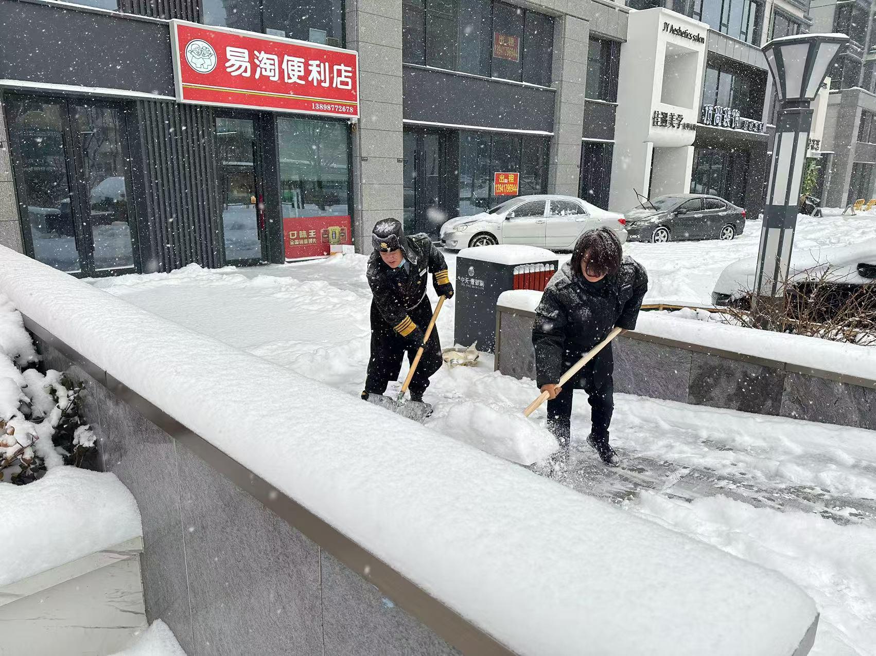 大伙兒熱火朝天、干勁十足的掃雪身影得到了許多路過業(yè)主的表揚和贊賞,而業(yè)主的肯定和贊許更增添了大家雪中奮戰(zhàn)的激情和動力。經(jīng)過努力,大家終于將小區(qū)內(nèi)主干道、小區(qū)門口、商網(wǎng)外圍的積雪清掃完畢,確保了業(yè)主出行道路安全順暢。戰(zhàn)風雪,斗嚴寒。此刻,比雪景更美的是這群物業(yè)人。雖然這場暴雪“封鎖”道路,但是鎖不住物業(yè)與業(yè)主之間的情誼。物業(yè)、業(yè)主齊心協(xié)力,攻克難關(guān)。親愛的家人們,有我們在,請您放心出行,安全回家!