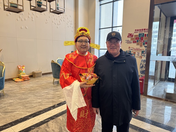 收到巧克力和糖果的業(yè)主還與“財神”合影留念,“恭喜發(fā)財”、“新年快樂”等祝福語不絕于耳。業(yè)主開心地說:“今天清早出門就遇上財神,真開心。”業(yè)主們看到財神爺,紛紛上前沾財氣,與財神合影。財神爺念著“新年好、身體健康、家庭幸福”祝福語,為業(yè)主們送上春節(jié)的祝福。業(yè)主們接過財神的財,沾上財神的福氣,希望在新的一年里身旺、財旺、運氣旺。歡聲笑語溢于言表,不少業(yè)主表示禮輕情意重!感謝各位業(yè)主家人們對我們服務(wù)的支持與認(rèn)可,中天物業(yè)繼續(xù)堅持“放心管家,服務(wù)到家”,為業(yè)主提供更好、更優(yōu)質(zhì)的服務(wù)。