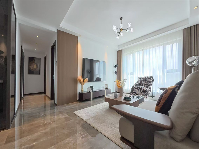推開樣板間大門,映入眼簾的是約4.2米開間的朗闊客廳,與270°觀景陽臺無縫銜接,河景風(fēng)光成為室內(nèi)最靈動的裝飾。清晨,第一縷陽光裹挾著河面的薄霧灑入,喚醒沉睡的生活靈感;傍晚,夕陽將粼粼波光揉碎成金色碎片,與家人倚坐觀景,感受時光緩緩流淌。開闊的空間布局不僅承載日常起居,更成為親朋歡聚的溫馨場域,窗外的河水仿佛是天然的背景音樂,為生活增添浪漫詩意。