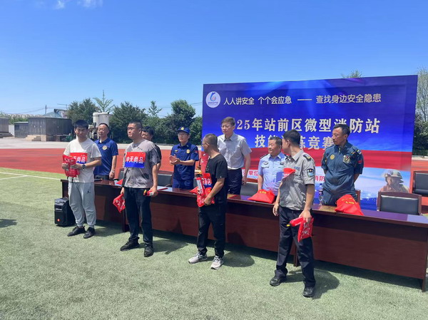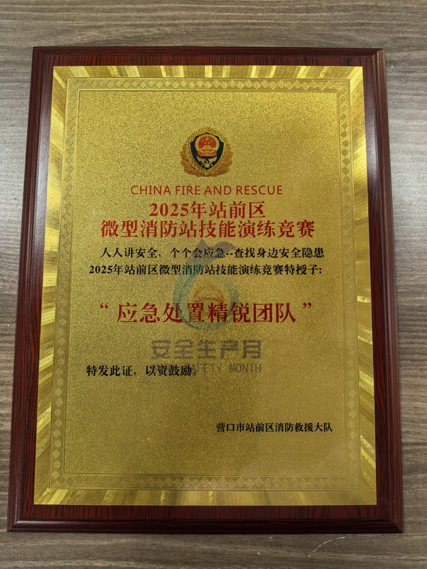 競賽緊扣實(shí)戰(zhàn)需求,設(shè)置水槍水帶連接賽、傷員擔(dān)架救援賽、防護(hù)裝備穿戴賽、滅火器識別選擇賽、消防知識挑戰(zhàn)賽等五個(gè)比賽項(xiàng)目,全面檢驗(yàn)選手的體能、技能和團(tuán)隊(duì)協(xié)作能力,充分展現(xiàn)現(xiàn)代化救援技術(shù)。中天物業(yè)最終獲得由站前區(qū)消防救援大隊(duì)頒發(fā)的二等獎(jiǎng)“應(yīng)急處置精銳團(tuán)隊(duì)”牌匾。