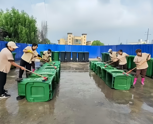 1. 徹底清底除污:保潔人員不懼高溫酷暑,將每一個(gè)垃圾桶徹底清空,并移開桶身。他們使用專業(yè)的高壓水槍、強(qiáng)力去污劑和消毒液,對(duì)桶身內(nèi)外壁、桶蓋縫隙、桶底地面進(jìn)行全方位、無(wú)死角的沖刷和刷洗,重點(diǎn)清除頑固污漬、油漬、食物殘?jiān)伴L(zhǎng)期累積的污垢。