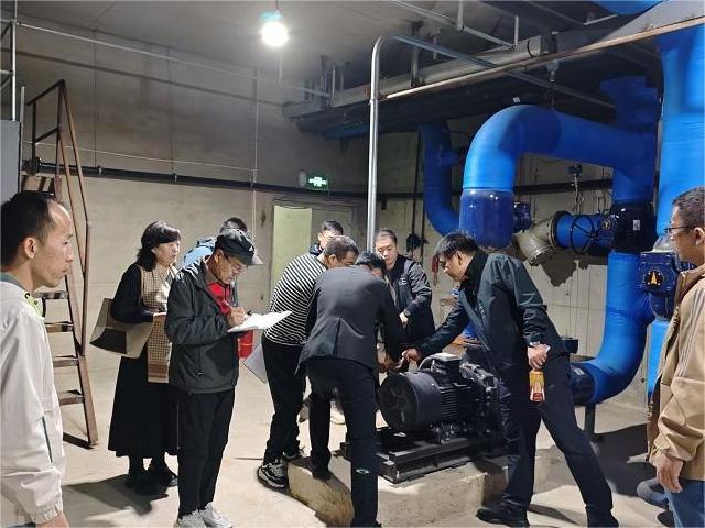 在設(shè)備房,專家組檢查了中央空調(diào)系統(tǒng)、電梯及公共區(qū)域照明等核心設(shè)施,確認(rèn)設(shè)備運行穩(wěn)定,基本符合國家高效節(jié)能標(biāo)準(zhǔn)。水泵房內(nèi)生活泵、消防泵及排污泵均正常運轉(zhuǎn),專家建議優(yōu)化泵組運行模式以進(jìn)一步降低能耗。針對供暖泵房,專家組肯定了其節(jié)能設(shè)計,并建議依據(jù)實際需求動態(tài)調(diào)整運行參數(shù),提升能源利用效率。在配電房,電氣設(shè)備配置規(guī)范、運行平穩(wěn),專家強調(diào)應(yīng)加強定期維護(hù),確保長期安全高效運行。