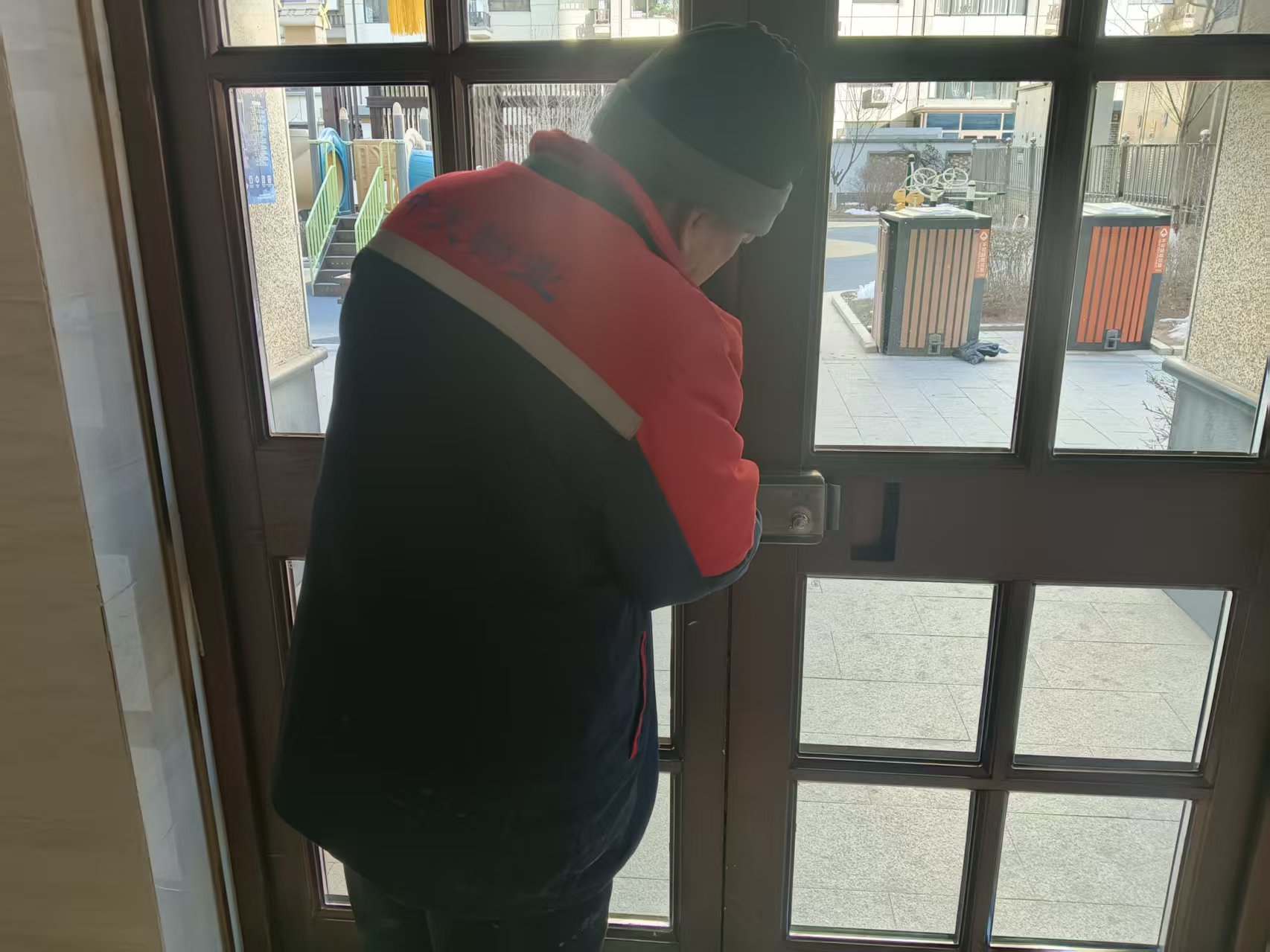進戶大堂門是小區(qū)的“門面擔當”,更是守護業(yè)主安全的第一道防線。為解決部分樓棟大堂門存在的開關卡頓、閉合不嚴、五金件磨損等問題,1月起書香庭院物業(yè)服務中心啟動專項維修行動,以精細施工煥新歸家體驗,用責任與匠心筑牢居住安全屏障。
