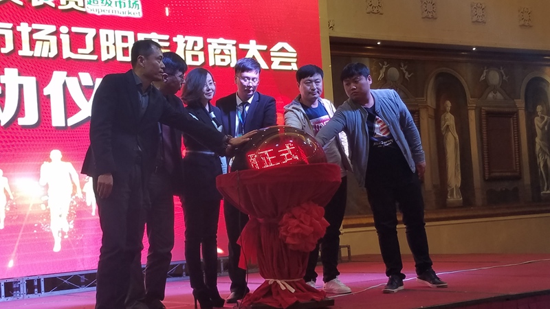 兩點四十五分,中天農(nóng)貿(mào)超級市場(遼陽御品店)招商會啟動儀式正式開始,中天集團副總經(jīng)理于洪波、遼陽分公司總經(jīng)理孫繼莊、中天農(nóng)貿(mào)公司總經(jīng)理張琳、中天農(nóng)貿(mào)超級市場(遼陽御品店)副總經(jīng)理郭子瑋先生以及商戶代表,共同觸碰水晶球,完成啟動儀式。五彩繽紛的水晶球,見證了著重要的歷史時刻。