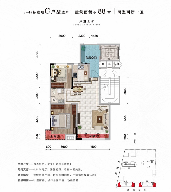 中天御品項目位于營口市渤海大街與平安路交會處,地處西市區(qū)核心位置,營口主城區(qū)的交通要道,地理位置十分優(yōu)越。行政配套遍布項目周邊,商業(yè)配套齊全滿足您日常購物所需。 項目占地面積1.6萬㎡,建筑面積3.7萬 ㎡,整體由4棟17層新中式雅居小高層組成,配有商鋪及車庫/車位,完全人車分流設(shè)計。 戶型種類齊全,面積區(qū)間從88平到118平,從兩室兩廳一衛(wèi)到三室兩廳兩衛(wèi)。全部戶型均為南北通透的五明戶型設(shè)計。