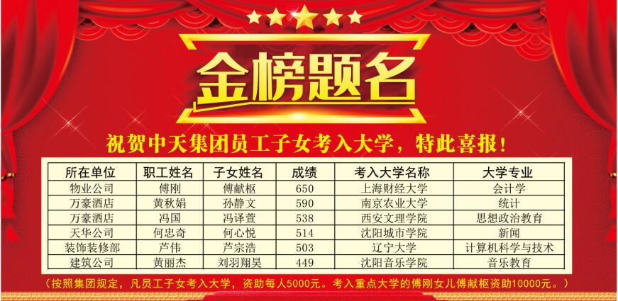 恭賀集團員工子女金榜題名