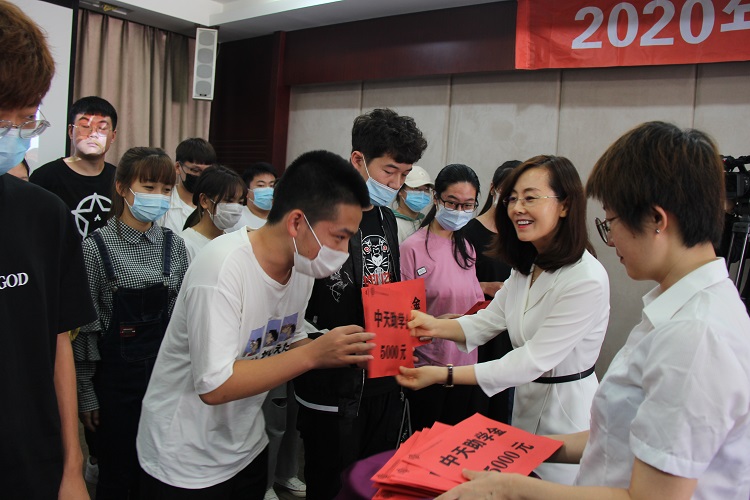 于總表示,今后將進一步跟蹤和關注這些受資助學生的情況,大家畢業(yè)后,中天集團將優(yōu)先選擇錄用。同時在同學們寒暑假期間,中天集團可以提供相應的崗位,給大家實習鍛煉的機會,盡早地參加社會實驗活動,盡早地成才,培養(yǎng)鍛煉大家學以致用。于總的講話博得了同學們熱烈的掌聲,也得到了團市委領導的高度贊揚。