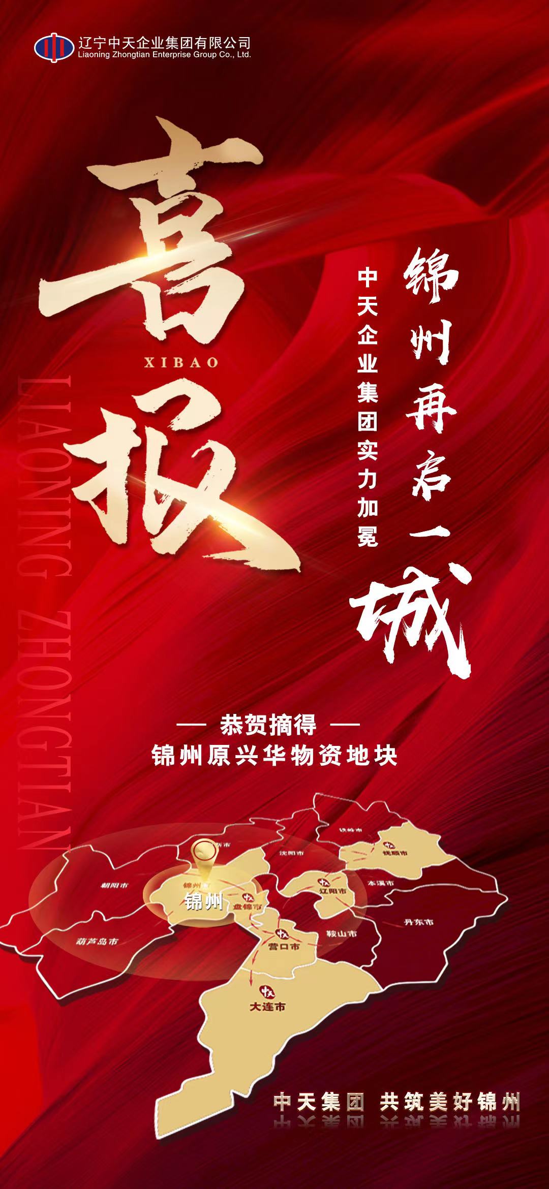 2021年10月15日15:00中天集團旗下錦州中天置業(yè)有限公司通過錦州市公共資源網上交易系統(tǒng)公開競得2021-20號錦州市凌河區(qū)原興華物資儲運有限公司地塊,標志著中天集團成功進軍錦州市,進一步實現(xiàn)布局遼寧的戰(zhàn)略構想,企業(yè)戰(zhàn)略發(fā)展版圖再擴張。