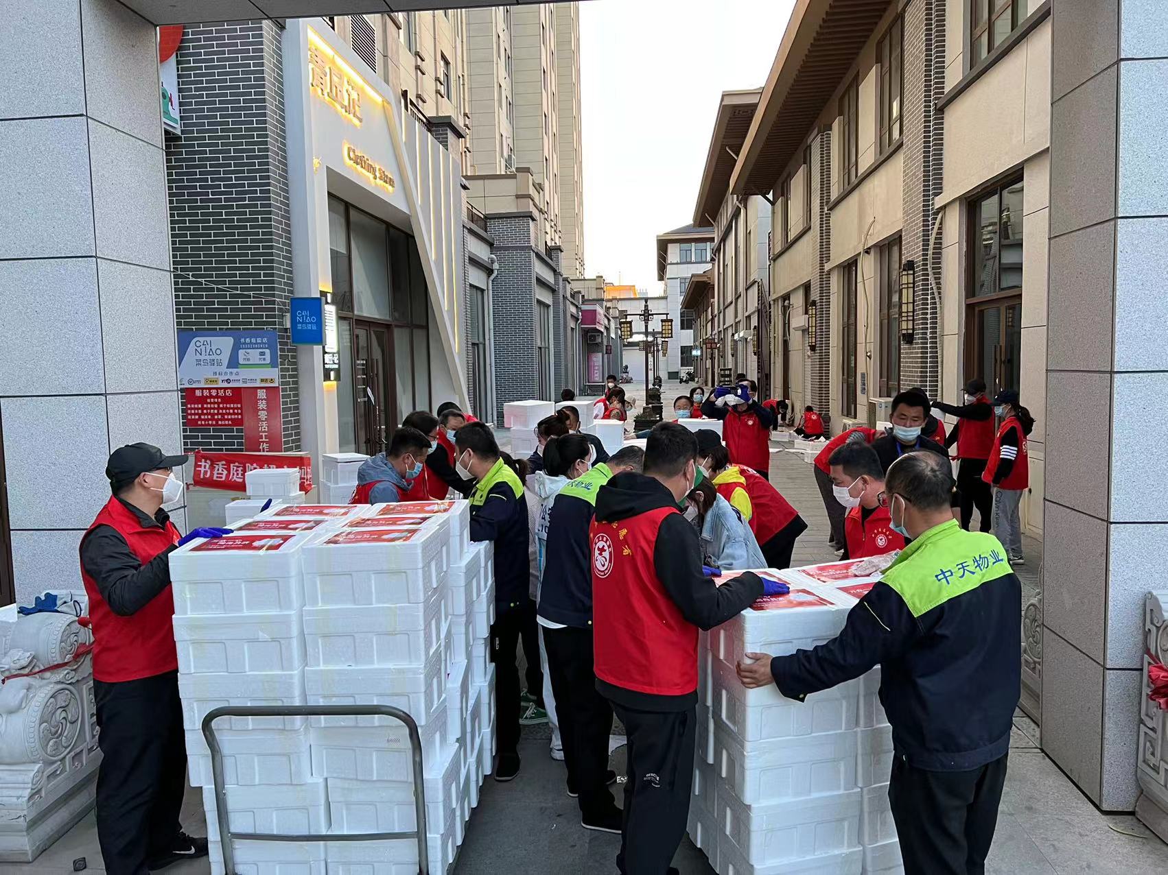 自全市實(shí)施社會面靜態(tài)管理以來,面對封控嚴(yán)格、采購不易的困難情況,如何能讓廣大封閉在家的業(yè)主生活的更踏實(shí)、更安心,如何能為廣大中天的家人們提供更好的服務(wù),成為中天物業(yè)人的頭等大事。5月14日,經(jīng)過多方溝通協(xié)調(diào),中天物業(yè)采購了大量的肉蛋蔬菜,為居住在中天旗下物業(yè)的每戶送上一份包含豬肉、雞蛋、黃瓜、豆角、茄子、蘑菇、辣椒、土豆、蒜薹、餃子共10種物資的禮包。從15日起,10輛物資配送車先后去往中天·御景華庭、中天壹品、中天尚品、中天·君臨天下、中天·桃花源、中天·御景灣、中天·御荷苑、中天·書香庭院、中天·英倫名邸,中天國際,中天大廈等11個營口住宅小區(qū),由物業(yè)員工和業(yè)主志愿者進(jìn)行分裝,逐棟樓通知領(lǐng)取,將溫暖送到4萬多業(yè)主手中。