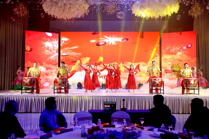 凱歌高奏辭舊歲,豪情滿懷迎新年。2023年1月14日,集團(tuán)在中天國際酒店宴會廳隆重聚會,總結(jié)過去一年工作,表獎先進(jìn)集體和先進(jìn)個人,部署2023年工作計劃,并舉辦第十五屆《魅力中天》迎新春聯(lián)歡晚會和慶功酒會。集團(tuán)于洪波總裁、于洪濤執(zhí)行總裁、周春雷、孫繼莊副總裁等領(lǐng)導(dǎo)與500余名員工代表、合作單位領(lǐng)導(dǎo)歡聚一堂,喜迎2023年新春佳節(jié)的到來。于寶權(quán)董事長也通過視頻會議的形式全程參與。