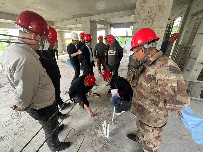 檢查共分為五個(gè)小組,分別為質(zhì)量小組對(duì)現(xiàn)場(chǎng)混凝土強(qiáng)度、箍筋間距、樓板厚度等進(jìn)行實(shí)體檢驗(yàn);安全文明小組對(duì)外防護(hù)腳手架、模板支撐體系、臨邊防護(hù)、防塵措施等進(jìn)行檢查;現(xiàn)場(chǎng)材料小組對(duì)材料規(guī)格、合格證、檢測(cè)報(bào)告、復(fù)試報(bào)告等進(jìn)行檢查;特種設(shè)備小組對(duì)塔吊的限位器、吊鉤、保險(xiǎn)等進(jìn)行檢查及試驗(yàn);內(nèi)業(yè)小組對(duì)五方責(zé)任主體的內(nèi)業(yè)資料進(jìn)行檢查。