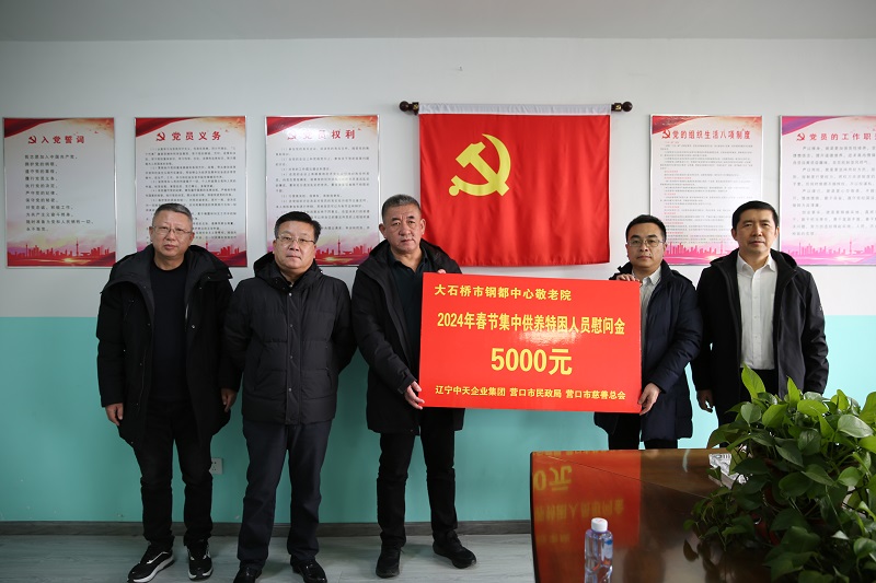 2024年1月30日,集團(tuán)行政人力資源總監(jiān)張瑞強(qiáng)隨營口市慈善總會(huì)副會(huì)長黃渤及營口市民政局副局長王貴鵬一行走訪慰問大石橋市鋼都區(qū)域性中心敬老院、大石橋市湯池區(qū)域性中心敬老院,代表中天企業(yè)集團(tuán)向機(jī)構(gòu)負(fù)責(zé)人詢問了機(jī)構(gòu)相關(guān)情況和目前面臨的困難,表態(tài)中天集團(tuán)將繼續(xù)關(guān)注困難群眾需求,以企業(yè)之力建立好關(guān)愛服務(wù)的長效機(jī)制。此前集團(tuán)向營口市慈善總會(huì)捐款5萬元,定向用于大石橋市鋼都區(qū)域性中心敬老院等三個(gè)單位、蓋州市九寨中心敬老院等九個(gè)單位集中供養(yǎng)特困人員,希望幫助他們歡度一個(gè)快樂祥和的春節(jié),用實(shí)際行動(dòng)詮釋了民營企業(yè)的責(zé)任與擔(dān)當(dāng)。