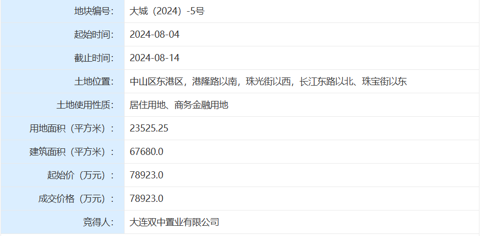 2024年8月14日9:30,遼寧中天企業(yè)集團和大連中山區(qū)城投發(fā)展控股集團組成的投資聯(lián)合體大連雙中置業(yè)有限公司,成功競得備受矚目的大連中山區(qū)東港C06-01地塊。這塊因種種原因沉寂多年的東港核心地塊最終落地。