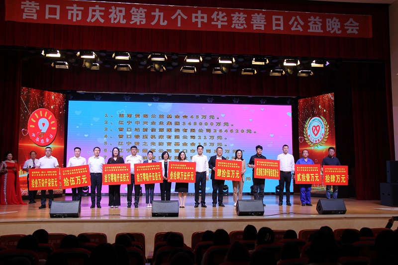 9月10日下午,由營(yíng)口市慈善總會(huì)主辦的營(yíng)口市慶祝第九個(gè)“中華慈善日”公益晚會(huì)在營(yíng)口職業(yè)技術(shù)學(xué)院舉辦。營(yíng)口市人大常委會(huì)副主任姚明、市政協(xié)副主席代萍等市領(lǐng)導(dǎo)出席本次晚會(huì)。晚會(huì)現(xiàn)場(chǎng),總裁于洪波代表中天集團(tuán)向營(yíng)口慈善總會(huì)捐款34.5萬(wàn)元。